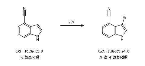 1.通过4-氰基吲哚合成3-溴-4-氰基吲哚,收率约78%;