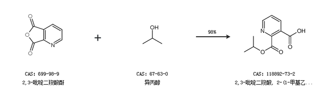 1.通过2,3-吡啶二羧酸酐和异丙醇合成2,3-吡啶二羧酸, 2-(1-甲基乙基)酯,收率约98%;