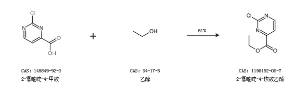 1.通过2-氯嘧啶-4-甲酸和乙醇合成2-氯嘧啶-4-羧酸乙酯,收率约61%;