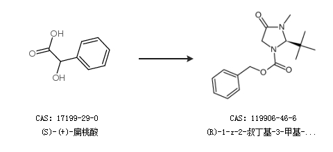 2.通过(S)-(+)-扁桃酸合成(R)-1-z-2-叔丁基-3-甲基-4-咪唑啉酮