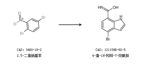 2.通过2,5-二溴硝基苯合成4-溴-1H-吲哚-7-羧酰胺