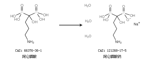 中文别名 (4-氨基-1-羟基-1-膦酸基-丁基)-磷酸钠盐;1,1-二甲基-2-甲硫基乙胺;阿伦磷酸钠;阿仑磷酸钠;三水阿仑膦酸钠;