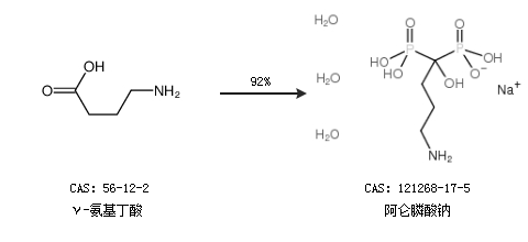 2.通过γ-氨基丁酸合成阿仑膦酸钠,收率约92%;