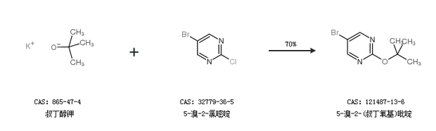 1.通过叔丁醇钾和5-溴-2-氯嘧啶合成5-溴-2-(叔丁氧基)吡啶,收率约70%;