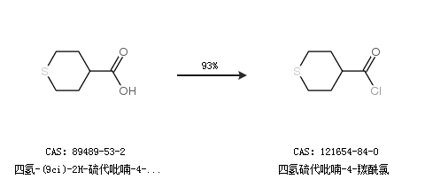 1.通过四氢-(9ci)-2H-硫代吡喃-4-羧酸合成四氢硫代吡喃-4-羰酰氯,收率约93%;