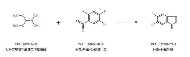 2.通过N,N-二甲基甲酰胺二甲基缩醛和4-氯-5-氟-2-硝基甲苯合成6-氯-5-氟吲哚
