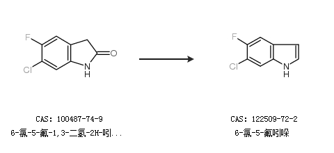 1.通过6-氯-5-氟-1,3-二氢-2H-吲哚-2-酮合成6-氯-5-氟吲哚