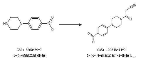 1.通过1-(4-硝基苯基)哌嗪合成3-[4-(4-硝基苯基)-1-哌嗪]-3-氧丙腈