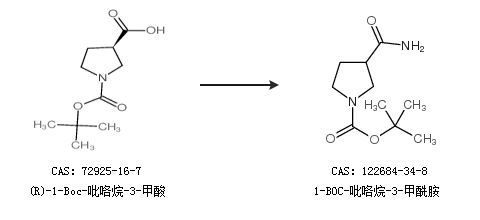 1.通过(R)-1-Boc-吡咯烷-3-甲酸合成1-BOC-吡咯烷-3-甲酰胺
