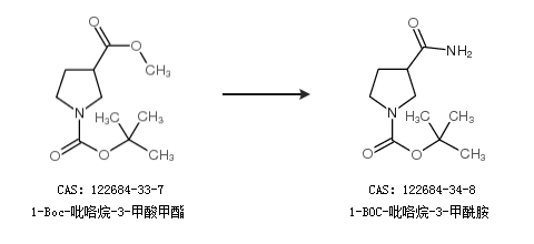 2.通过1-Boc-吡咯烷-3-甲酸甲酯合成1-BOC-吡咯烷-3-甲酰胺