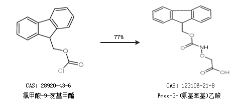 2.通过氯甲酸-9-芴基甲酯合成Fmoc-3-(氨基氧基)乙酸,收率约77%;