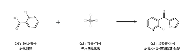 2.通过2-氯烟酸和无水四氯化锡合成2-氯-3-(2-噻吩羰基)吡啶