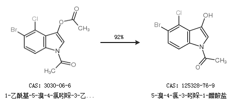 1.通过1-乙酰基-5-溴-4-氯吲哚-3-乙酸酯合成5-溴-4-氯-3-吲哚-1-醋酸盐,收率约92%;