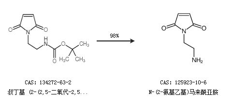 1.通过叔丁基 (2-(2,5-二氧代-2,5-二氢-1H-吡咯-1-基)乙基)氨基甲酸酯合成N-(2-氨基乙基)马来酰亚胺,收率约98%;