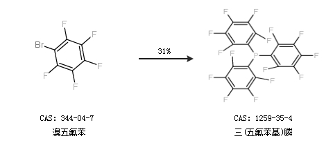 1.通过溴五氟苯合成三(五氟苯基)膦,收率约31%;