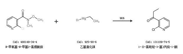 1.通过N-甲氧基-N-甲基2-氯烟酰胺和乙基溴化镁合成1-(2-氯吡啶-3-基)丙烷-1-酮,收率约96%;