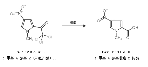 1.通过1-甲基-4-硝基-2-(三氟乙酰)-1H-吡咯合成1-甲基-4-硝基吡咯-2-羧酸,收率约98%;
