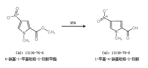 2.通过4-硝基-1-甲基吡咯-2-羧酸甲酯合成1-甲基-4-硝基吡咯-2-羧酸,收率约95%;
