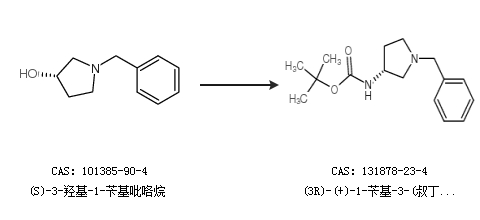 2.通过(S)-3-羟基-1-苄基吡咯烷合成(3R)-(+)-1-苄基-3-(叔丁氧羰基氨基)吡咯烷