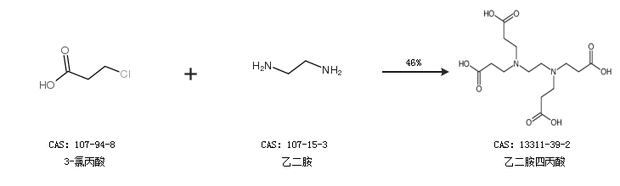 1.通过3-氯丙酸和乙二胺合成乙二胺四丙酸,收率约46%;