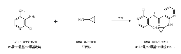 1.通过2-氯-3-氨基-4-甲基吡啶和环丙胺合成N-(2-氯-4-甲基-3-吡啶)-2-环丙氨基-3-吡啶甲酰胺,收率约78%;