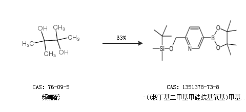 2.通过频哪醇合成2-((叔丁基二甲基甲硅烷基氧基)甲基)-5-(4,4,5,5-四甲基-1,3,2-二噁硼烷-2-基)吡啶,收率约63%;