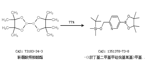 1.通过联硼酸频那醇酯合成2-((叔丁基二甲基甲硅烷基氧基)甲基)-5-(4,4,5,5-四甲基-1,3,2-二噁硼烷-2-基)吡啶,收率约77%;