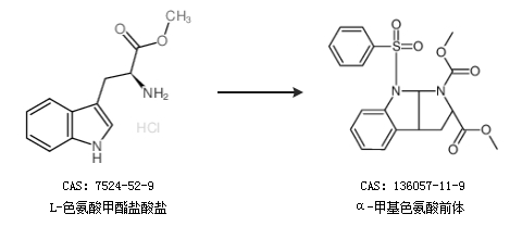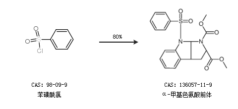 1.通过苯磺酰氯合成α-甲基色氨酸前体,收率约80%;