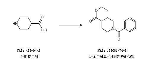 2.通过4-哌啶甲酸合成1-苯甲酰基-4-哌啶羧酸乙酯