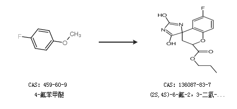2.通过4-氟苯甲醚合成(2S,4S)-6-氟-2,3-二氢-2’,5’-二氧螺(4H-1-苯并吡喃-4,4’-咪唑烷)-2-羧酸正丙酯