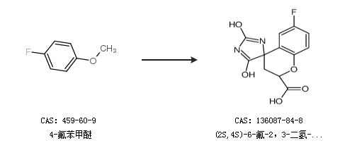 2.通过4-氟苯甲醚合成(2S,4S)-6-氟-2,3-二氢-2’,5’-二氧螺(4H-1-苯并吡喃-4,4’-咪唑烷)-2-羧酸