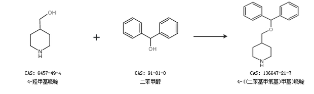 2.通过4-羟甲基哌啶和二苯甲醇合成4-((二苯基甲氧基)甲基)哌啶