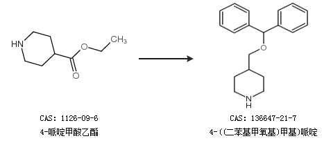 1.通过4-哌啶甲酸乙酯合成4-((二苯基甲氧基)甲基)哌啶