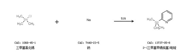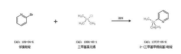 2.通过三甲基氯化锡和钠合成2-(三甲基甲锡烷基)吡啶,收率约51%;