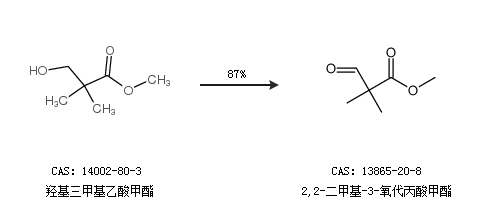 1.通过羟基三甲基乙酸甲酯合成2,2-二甲基-3-氧代丙酸甲酯,收率约87%;