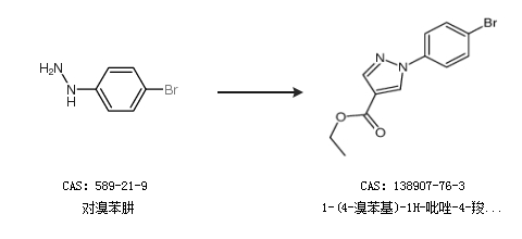 1.通过对溴苯肼合成1-(4-溴苯基)-1H-吡唑-4-羧酸乙酯