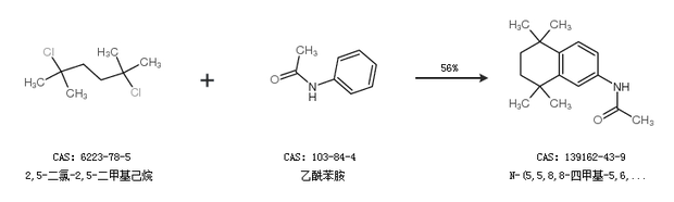 1.通过2,5-二氯-2,5-二甲基己烷和乙酰苯胺合成N-(5,5,8,8-四甲基-5,6,7,8-四氢-2-萘)乙酰胺 (他米巴罗汀),收率约56%;