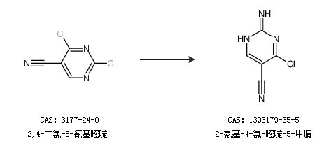 2.通过2,4-二氯-5-氰基嘧啶合成2-氨基-4-氯-嘧啶-5-甲腈