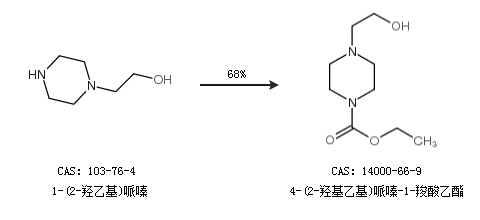 1.通过1-(2-羟乙基)哌嗪合成4-(2-羟基乙基)哌嗪-1-羧酸乙酯,收率约68%;