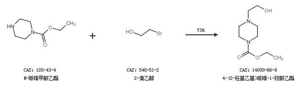 2.通过N-哌嗪甲酸乙酯和2-溴乙醇合成4-(2-羟基乙基)哌嗪-1-羧酸乙酯,收率约73%;