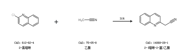 2.通过2-氯喹啉和乙腈合成2-(喹啉-2-基)乙腈,收率约31%;