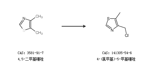1.通过4,5-二甲基噻唑合成4-(氯甲基)-5-甲基噻唑
