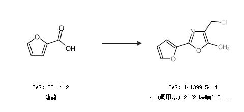 1.通过糠酸合成4-(氯甲基)-2-(2-呋喃)-5-甲基噁唑