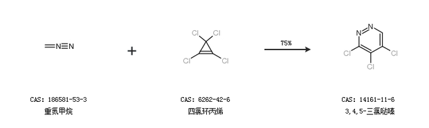 2.通过重氮甲烷和四氯环丙烯合成3,4,5-三氯哒嗪,收率约75%;