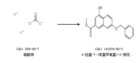 1.通过碳酸钾合成4-羟基-7-(苯基甲氧基)-2-萘羧酸甲酯