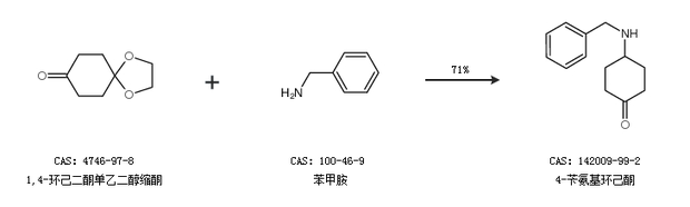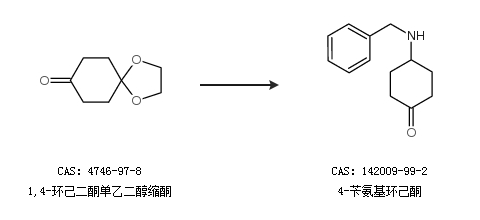 1.通过1,4-环己二酮单乙二醇缩酮和苯甲胺合成4-苄氨基环己酮,收率约71%;