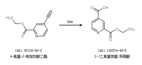 1.通过4-氰基-2-吡啶羧酸乙酯合成2-(乙氧基羰基)异烟酸,收率约56%;