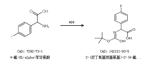 1.通过4-氟-DL-alpha-苯甘氨酸合成2-(叔丁氧基羰基氨基)-2-(4-氟苯基)乙酸,收率约46%;