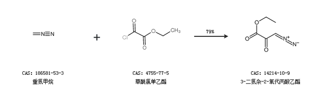 1.通过重氮甲烷和草酰氯单乙酯合成3-二氮杂-2-氧代丙酸乙酯,收率约79%;