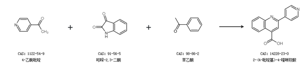 2.通过4-乙酰吡啶、吲哚-2,3-二酮和苯乙酮合成2-(4-吡啶基)-4-喹啉羧酸